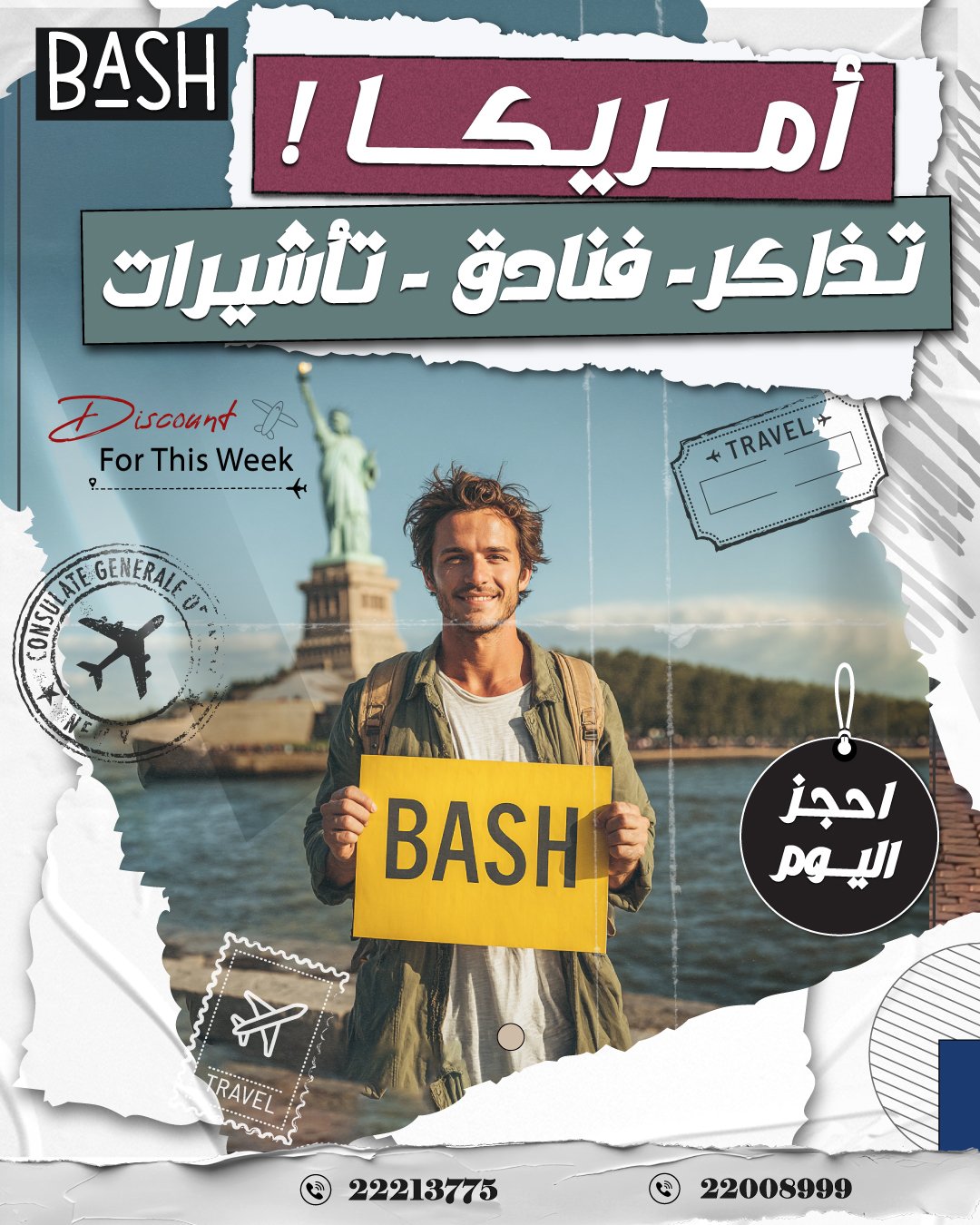 أدارت كريتيف خدمات تصميم السوشيال ميديا وإدارة إعلانات فيسبوك وإنستجرام لشركة BASH السياحية في الكويت،